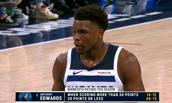 世界杯数据中心-这是啥情况?爱德华兹本赛季30+时14胜12负 30分及以下26胜13负
